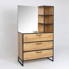 Комод состоит из 3-х выкатных ящиков, и полочек, а также имеет большое зеркало с фацетом.